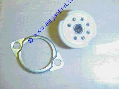 FAS011 | Fassung Chassis Oktal Kunststoff Spezialversion für mag. Augen, kreisrunde Scheibe ohne Befestigung, Gebrauchtware | 8 pin octal special version without mountings for tuning indicators like EM34. Used | octal plastique, version speciale pour les tubes-indicateurs comme EM 34 etc. Occasion | 1,20 | 1,43 |