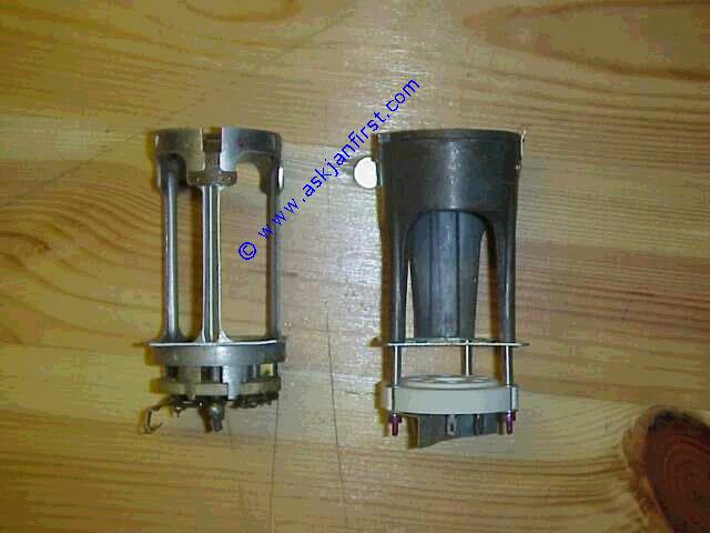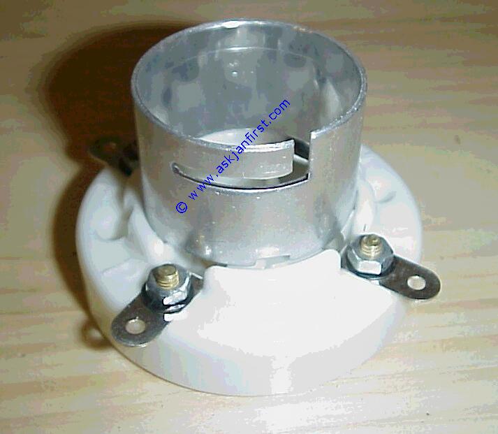 FAS276 | Fassung keramisch für GU 50, LS 50, mit Käfig. Geliefert wird je nach Verfügbarkeit die alte dt. Version oder die Russ. Version | socket, ceramic for GU 50 with cage | Support pour tube Gu 50 / L S 50 avec casque métal | call | a.A. |