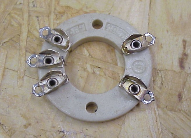 FAS028-9 | B5 (passen auch B4 Röhren ) Fassung auf Keramikplättchen von Keramische Werke Hermsdorf, also original deutsche Fertigung, die hübsche Version mit den versenkten Löchern, Neuware. | B5 ( fits B4 based tubes as well) ceramic GERMAN MADE socket, NOS, made by Keramische Werke Hermsdorf, Tridelta, nice version, silvered contacts NOS | Embase B 5 pour les tubes anciens europeens, neuf, fabrication allemande. Très joli. | 8,00 | 9,57 |