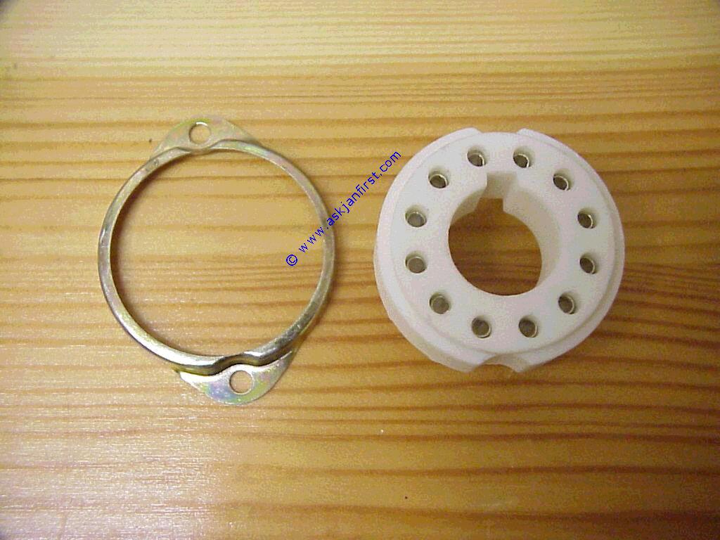 FAS065 | Fassung Loktal Keramik mit Abschirmkontakt-Kragen für Poströhren Neuware | socket loktal for C3m with contact rim ceramic | Embase Loctal B8G pour C 3 m etc, céramique, Siemens avec un col de contact pour les C 3 m etc. | call |