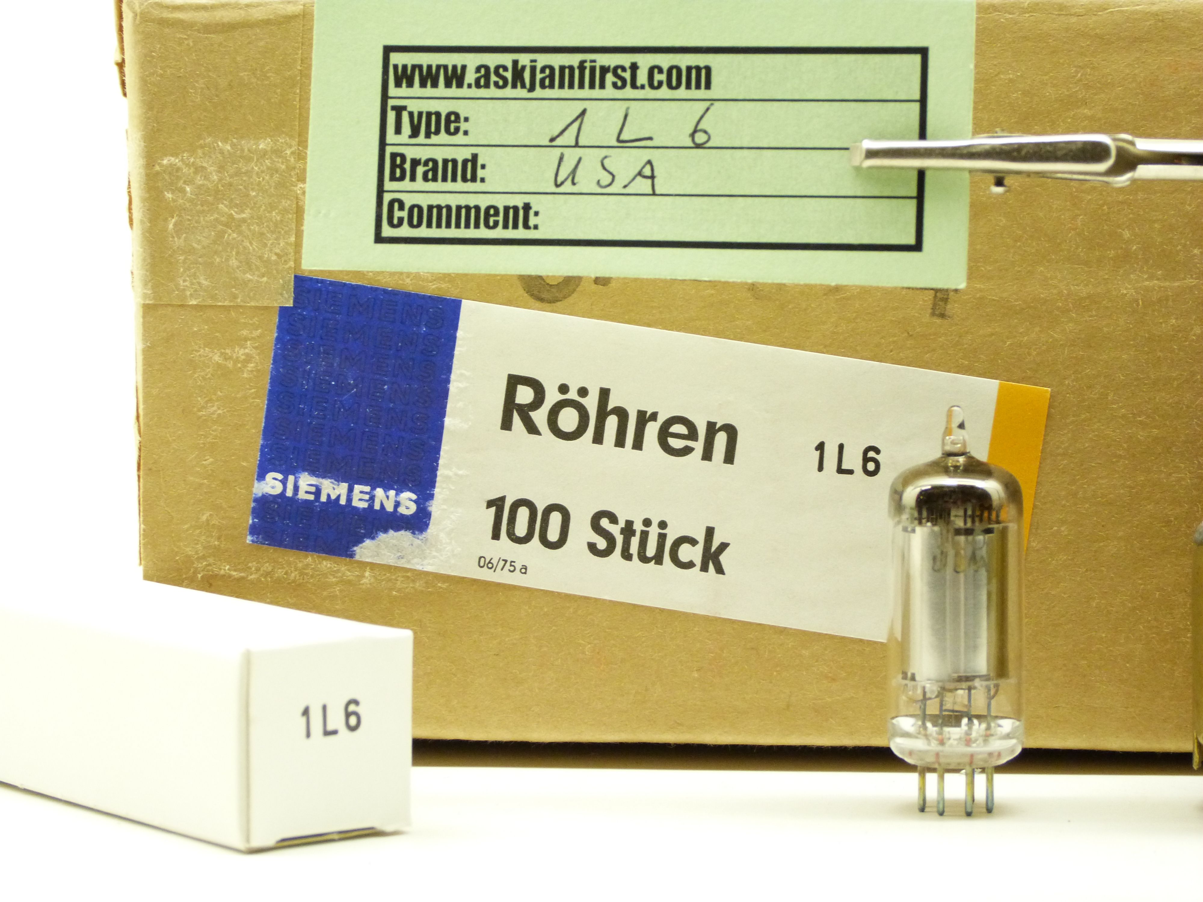 Echte NOS 1L6 für Zenith Tranoceanic, Hallicrafter usw. Gefertigt von Sylvania, OEM / Garantieübernahme durch Siemens seinerzeit für das Schweizer Bundesheer. Nagelneu, OVP, nur EUR 18,- / 21,42 each ( excl./incl. MWSt.) Regulär ist diese Röhre kaum unter 40 EUR zu bekommen. Angaben zur Produkthaftung: Dieser Artikel ist eine Antiquität. |