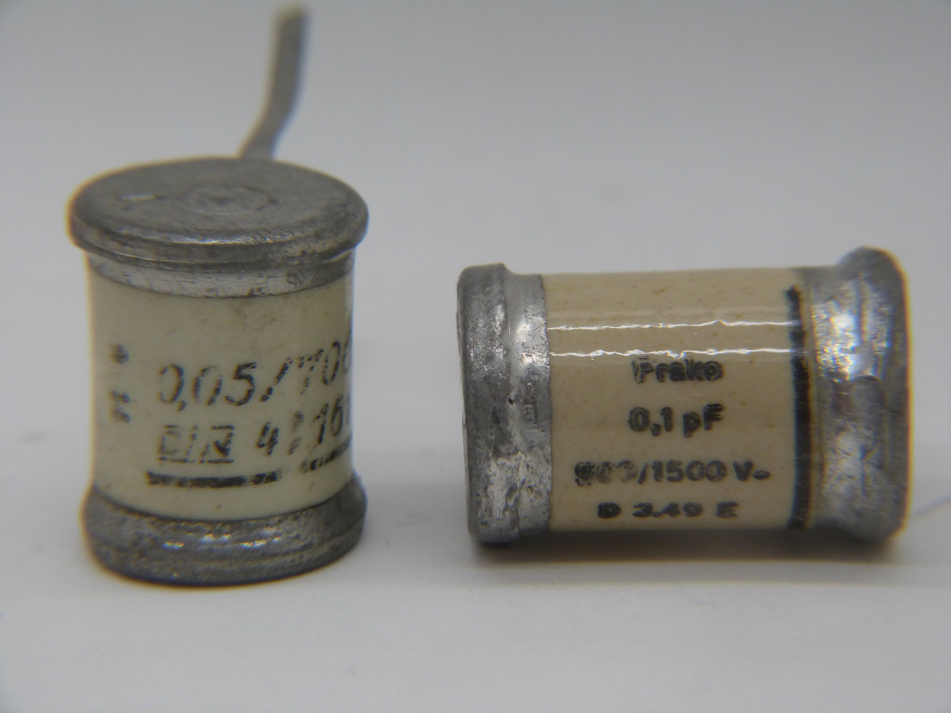 und baugleiche Kondensatoren: Wunderschöne, hermetisch tropenfeste, alte Kondensatoren in dem immer benötigten Wert von 50nF. Makellose, alte Ware. Wir können diese auch ausgemessen und gepaart liefern. Hersteller sind Siemens, SABA, Hydra, Frako... Hergestellt in den 1940er / 1950er Jahren. Lieferbare Werte: Artikelnummer KORH503: 50nF 700V EUR 3,90 Lieferung ausgemessen: Aufpreis je Stück 1,70 EUR Lieferung gepaart: Aufpreis je Paar EUR 5,20 (jeweils incl. MWst.) Das sind wunderschöne Koppelkondensatoren Angaben zur Produkthaftung: Dieser Artikel ist eine Antiquität. |
