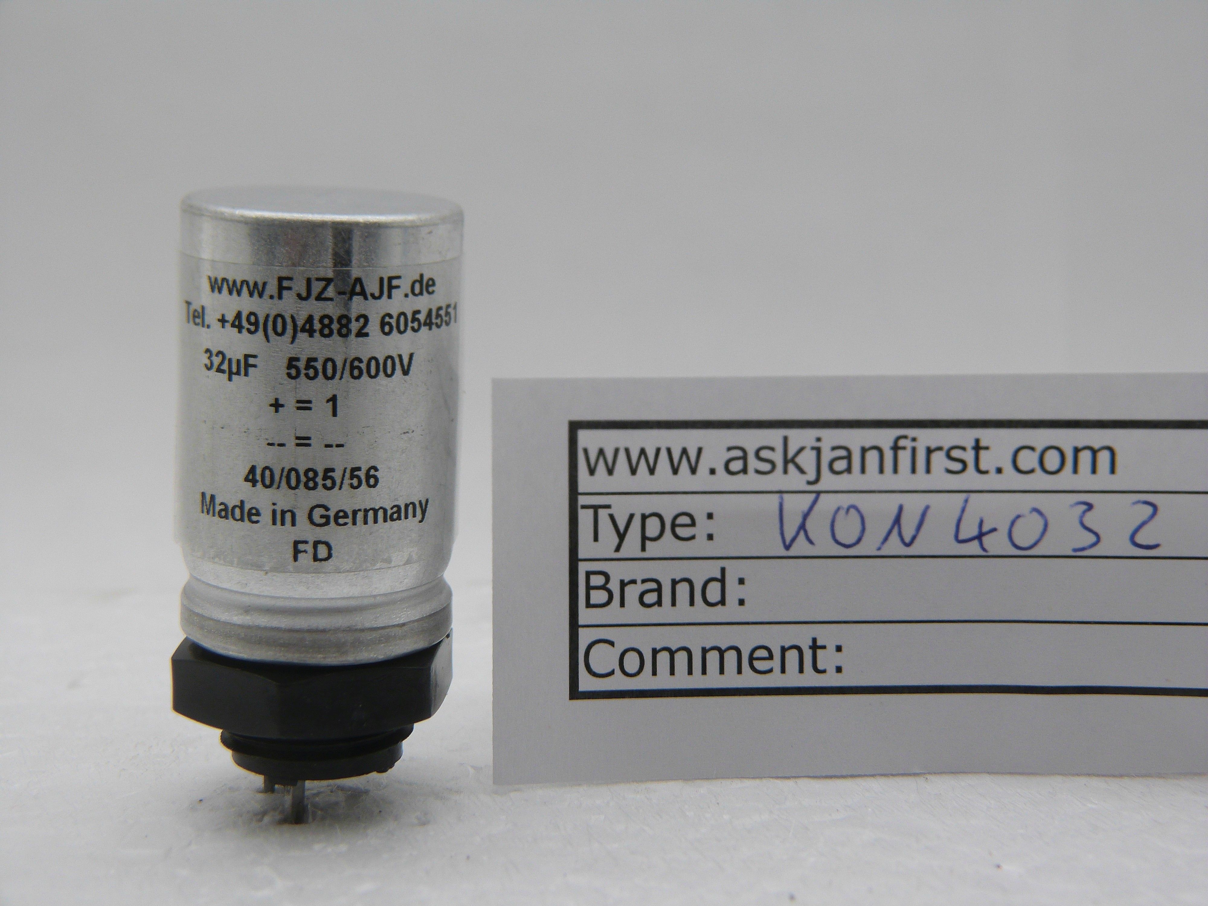KON4032 | 32 uF 550/600 V Einfachelko 25*40 mm² | 32 uF 550/600 Vsingle capacitance 25*40 mm² | 32 uF 550/600 Vsingle capacitance 25*40 mm² | 12,80 |