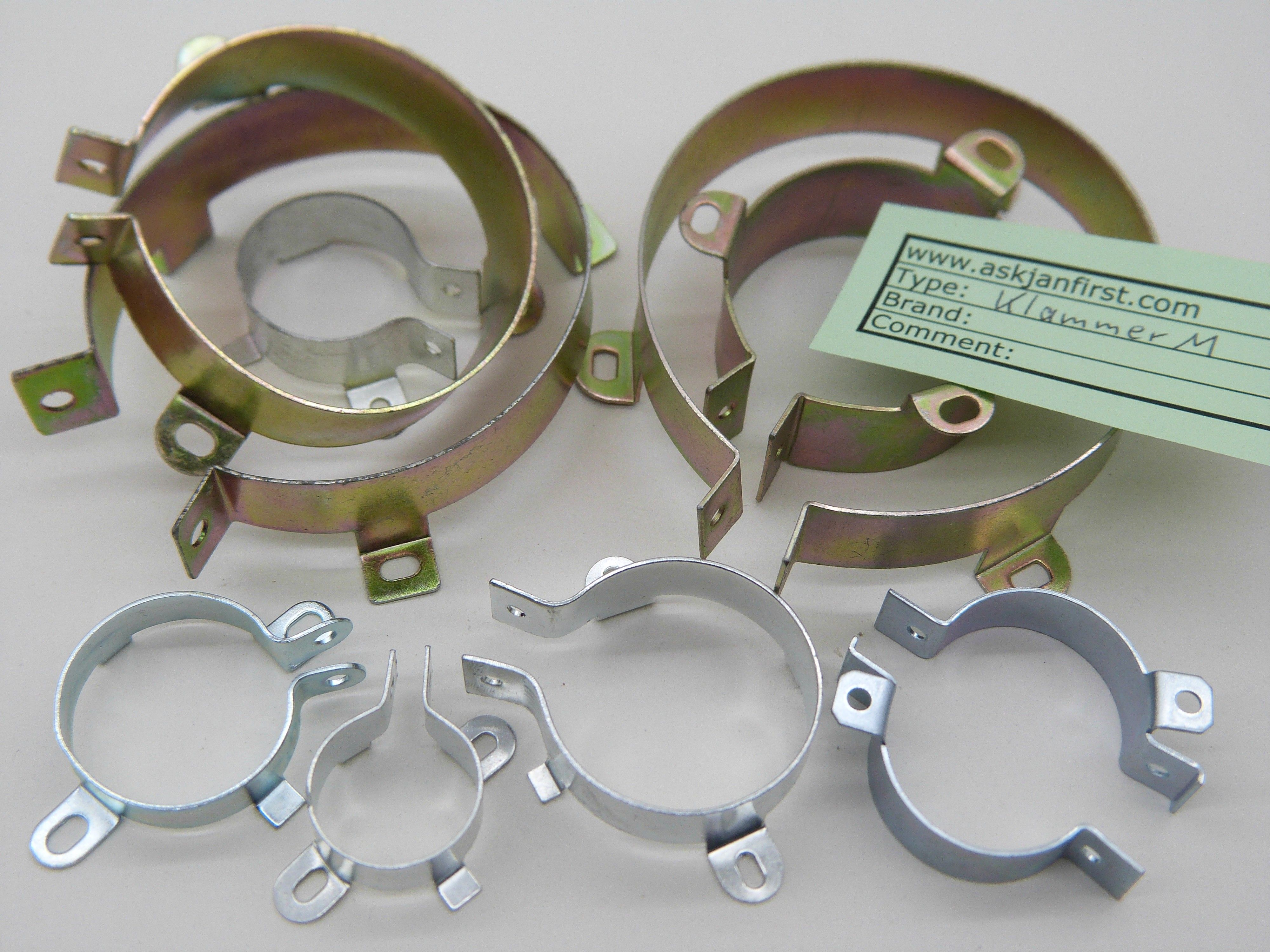 Klammer-M80 | 80 mm Montageklammer aus galvanisiertem oder vernickeltem Blech für die Montage von 80mm-Durchmesser-Kondensatoren etc. | Mounting clamp 80 mm, metal, | Collier pour les condensateurs ou les tubes, 80 mm, acier. | 3,50 | 4,17 | Frag