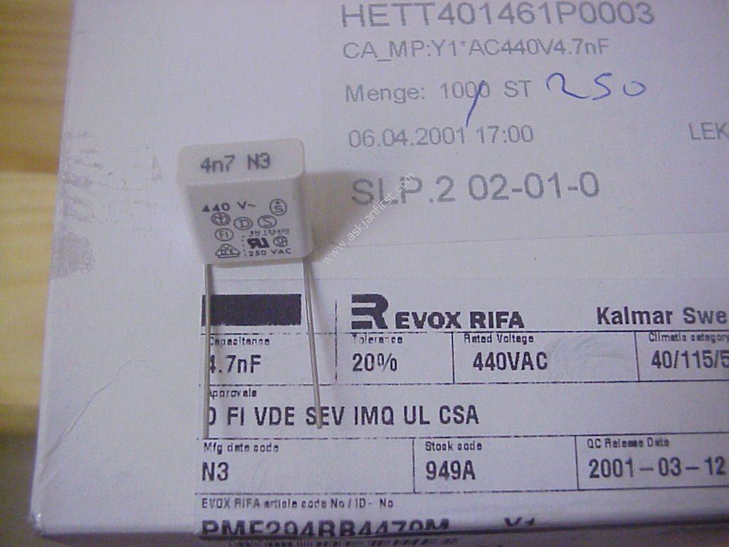 RIFA 4n7 Entstörkondensator, Y-Spezifikation, lange (!!) Anschlußdrähte, höchste Qualität | RIFA 4n7 440VAC = 1 kVDC long leads high quality cap | RIFA 4n7 440 V CA, 1kVDC, fils longes | 1,00 | 1,16 | YAEGO